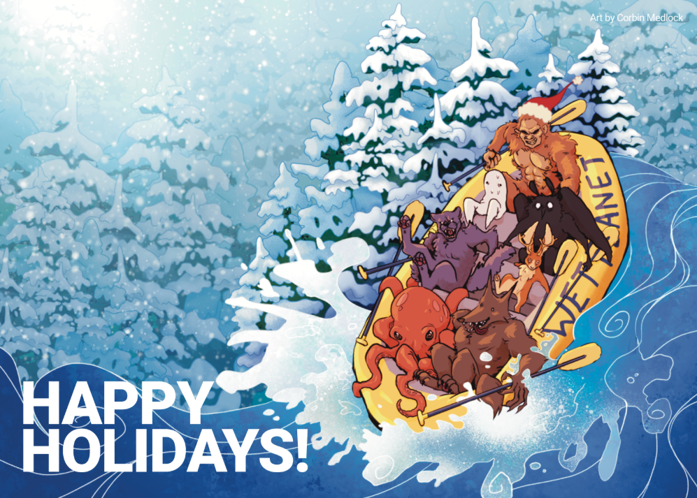 Holiday card done for Wet Planet Whitewater Rafting Co. in White Salmon, WA.